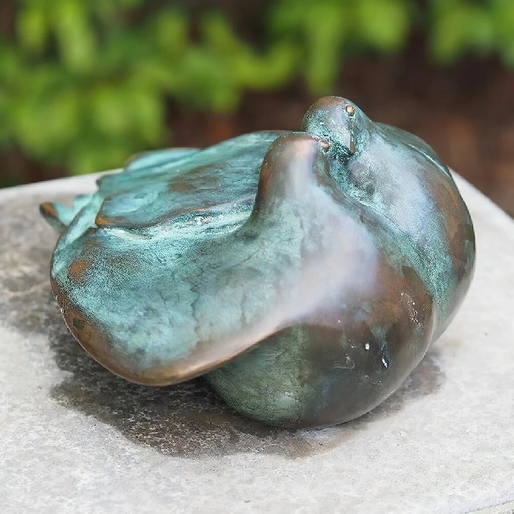 Dieses Taubenpärchen wird als Bronzefigur für die Aufstellung im Außenbereich wetterfest gefertigt. Eine farbige Patina verleiht der Bronzeskulptur einen individuellen Charme.
