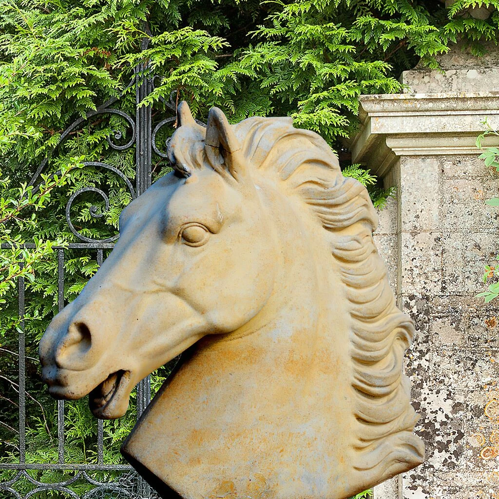 Ausdrucksstarke Pferdekopfskulptur für den Garten