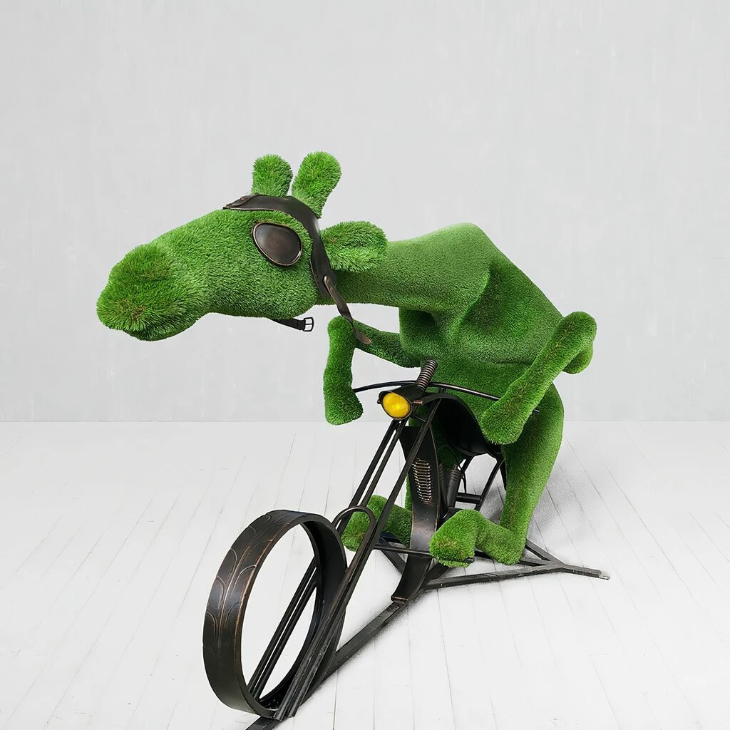 Alle Figuren entstehen als 3D-Modell am Computer. Anschließend wird der Rahmen aus Glasfaserkunststoff hergestellt und von Hand mit Kunstrasen beklebt. Jede Skulptur ist somit ein individuelles Unikat. Dank des Glasfaser Rahmens sind die Topiaries besonders leicht, stoßfest und langlebig – außerdem rostfrei, korrosions- sowie temperatur- und UV-beständig. Es sind keine weiteren Pflegemaßnahmen nötig. Die Gewichtsbeschränkung für die Formschnittfiguren liegt zwischen 30 bis 250kg. Wichtig ist, dass die Skulpturen weit entfernt von Feuerstellen aufgestellt werden.