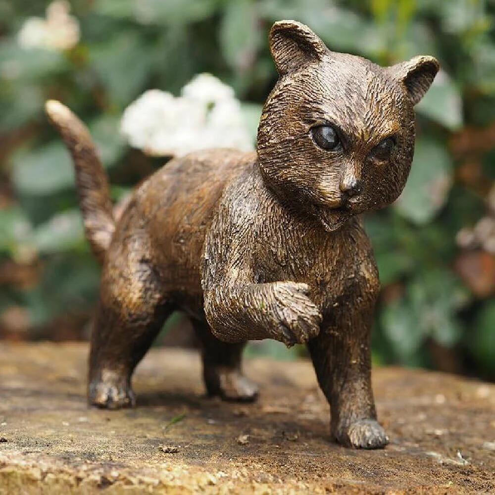 Als Katzenjungtier aus Bronze modelliert, stellt diese Gartenstatue einen hohen Anspruch an Verarbeitung und Robustheit. Die Katzenskulptur ist beständig gegenüber Frost, Nässse sowie Hitze.