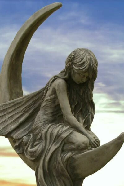Romantischer Engel Aus Stein Mit Mondsichel – Marianne