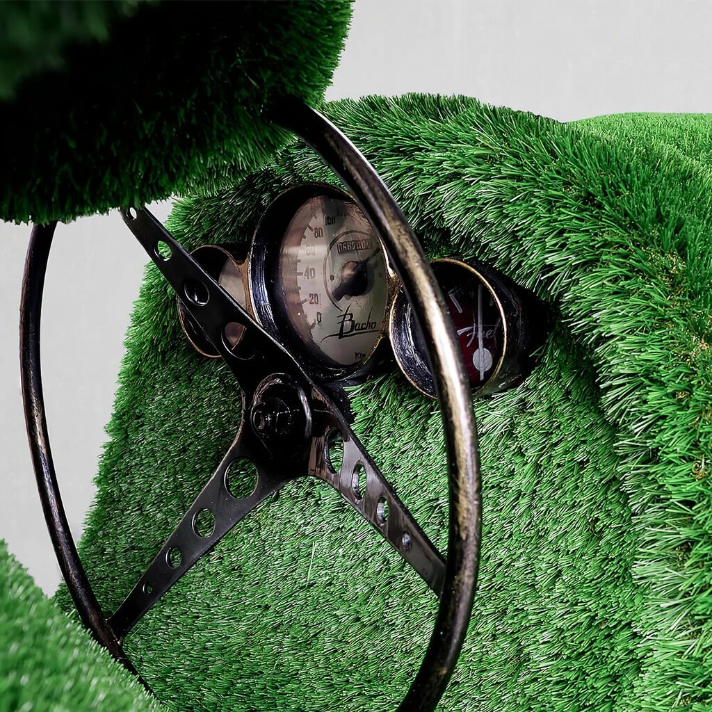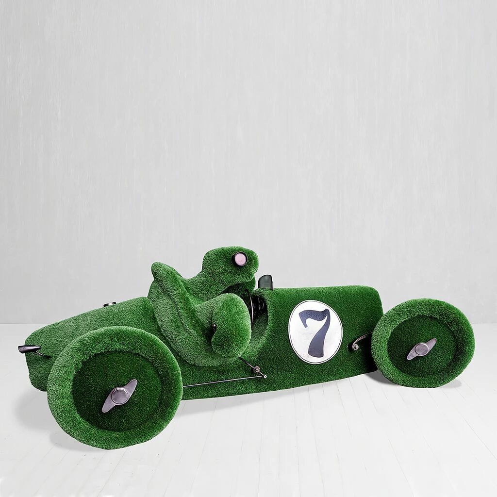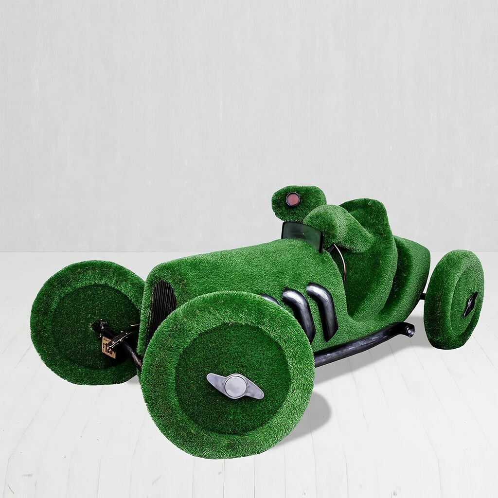Alle Figuren entstehen als 3D-Modell am Computer. Anschließend wird der Rahmen aus Glasfaserkunststoff hergestellt und von Hand mit Kunstrasen beklebt. Jede Skulptur ist somit ein individuelles Unikat. Dank des Glasfaser Rahmens sind die Topiaries besonders leicht, stoßfest und langlebig – außerdem rostfrei, korrosions- sowie temperatur- und UV-beständig. Es sind keine weiteren Pflegemaßnahmen nötig. Die Gewichtsbeschränkung für die Formschnittfiguren liegt zwischen 30 bis 250kg. Bitte achten Sie darauf, die Skulpturen weit entfernt von Feuerstellen aufzustellen.