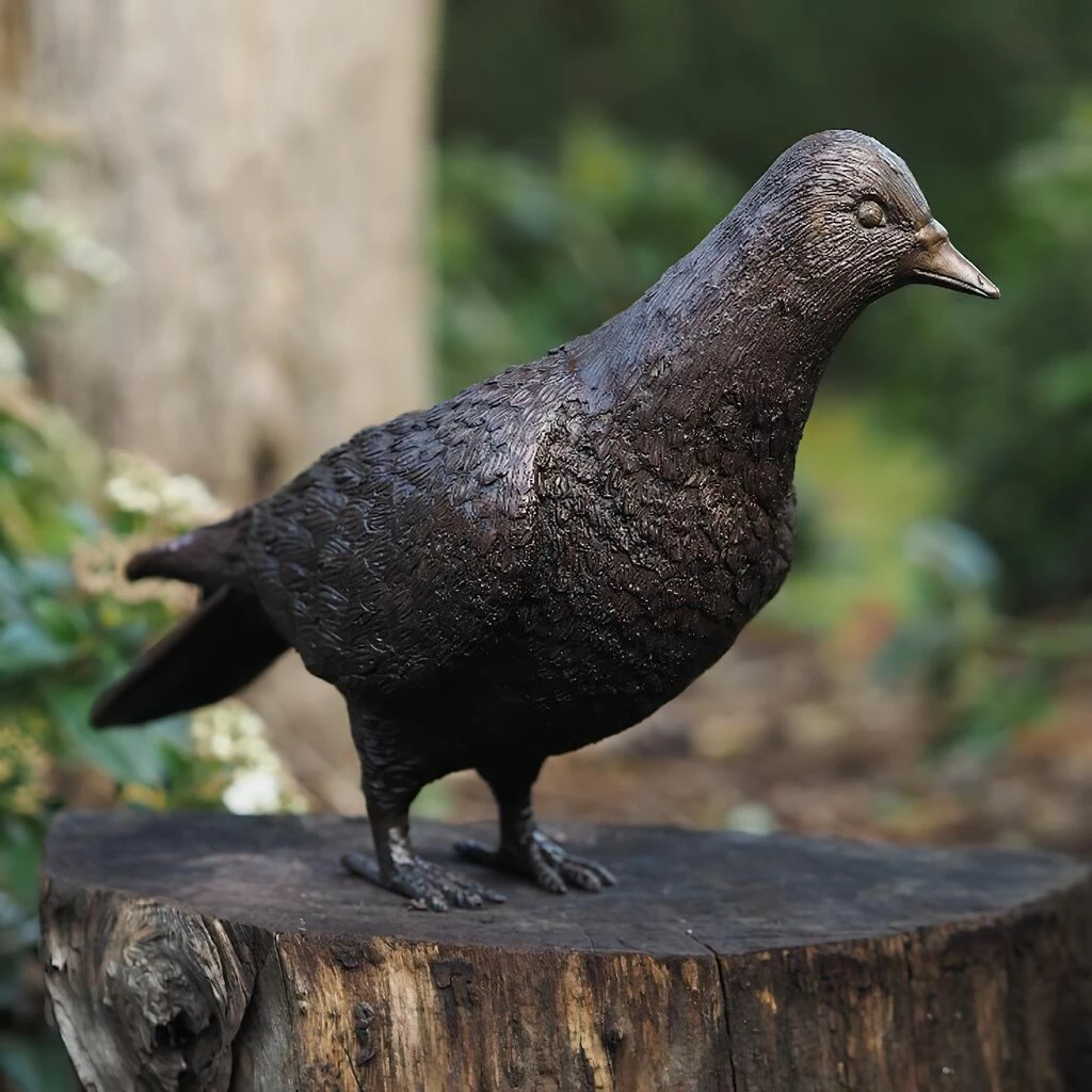 Diese Vogelfigur aus Bronze ist ein schöner Blickfang auf einem Baumstamm, einem Podest oder im Blumenbeet. Die Bronzeskulptur ist beständig gegenüber Frost und Regen sowie leicht zu reinigen.