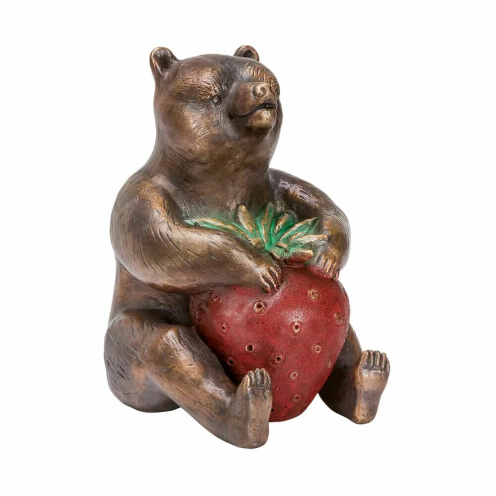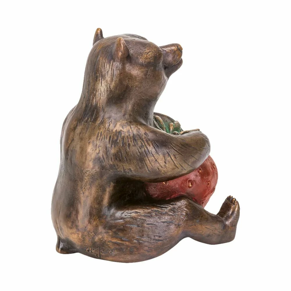 Sitzende Bärenskulptur Mit Erdbeere – Limitiert – Verwunschener Erbeerprinz