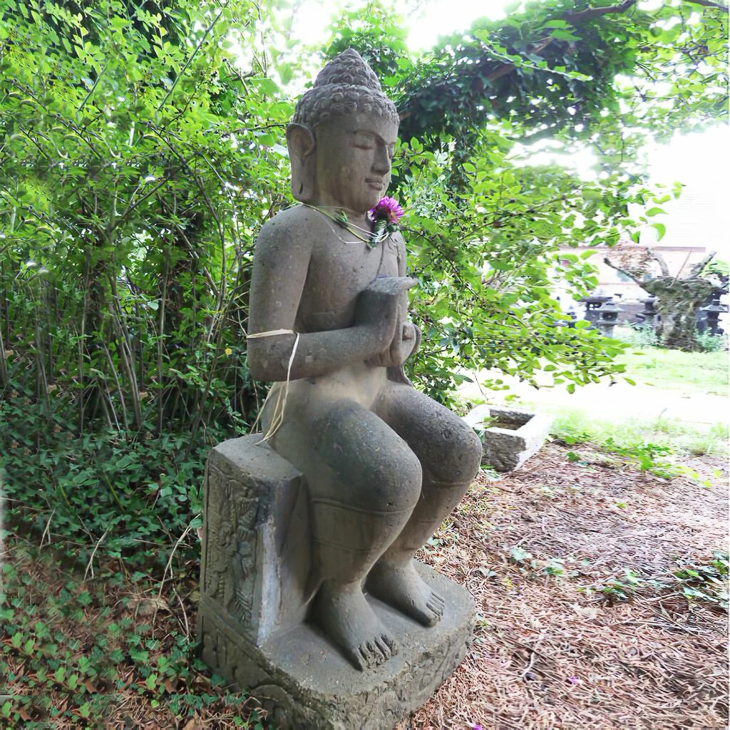 Sitzender Buddha als edle Gartenfigur in Naturstein