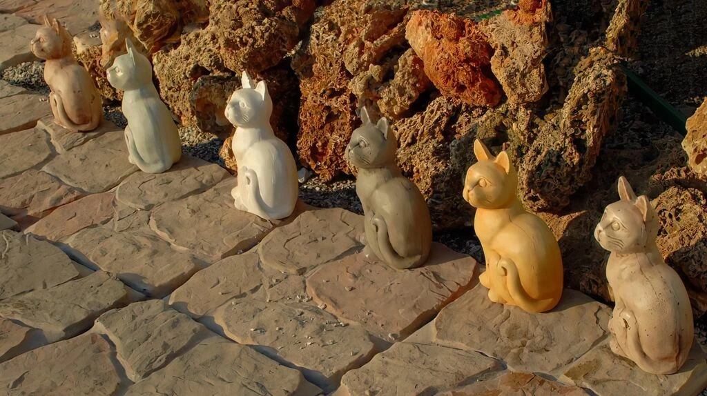 Die kleine Katzenfigur wird aus wetterbeständigem Steinguss hergestellt und ist in verschiedenen Farbvarianten erhältlich. Die dekorative Tierskulptur kann sowohl in Innenräumen, wie auch im Garten oder vor dem Haus einen Platz finden.