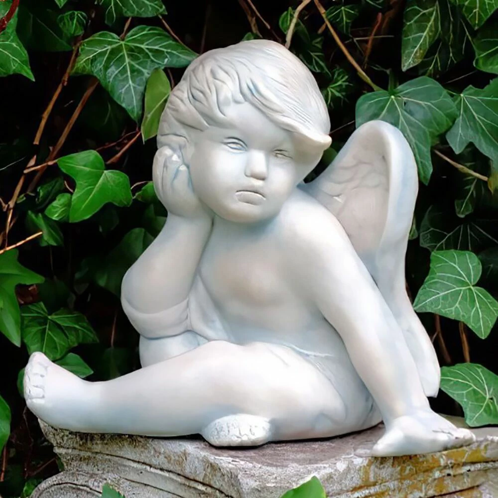 Sitzender Steinguss Engel Als Dekorative Figur Für Den Garten – Rheos