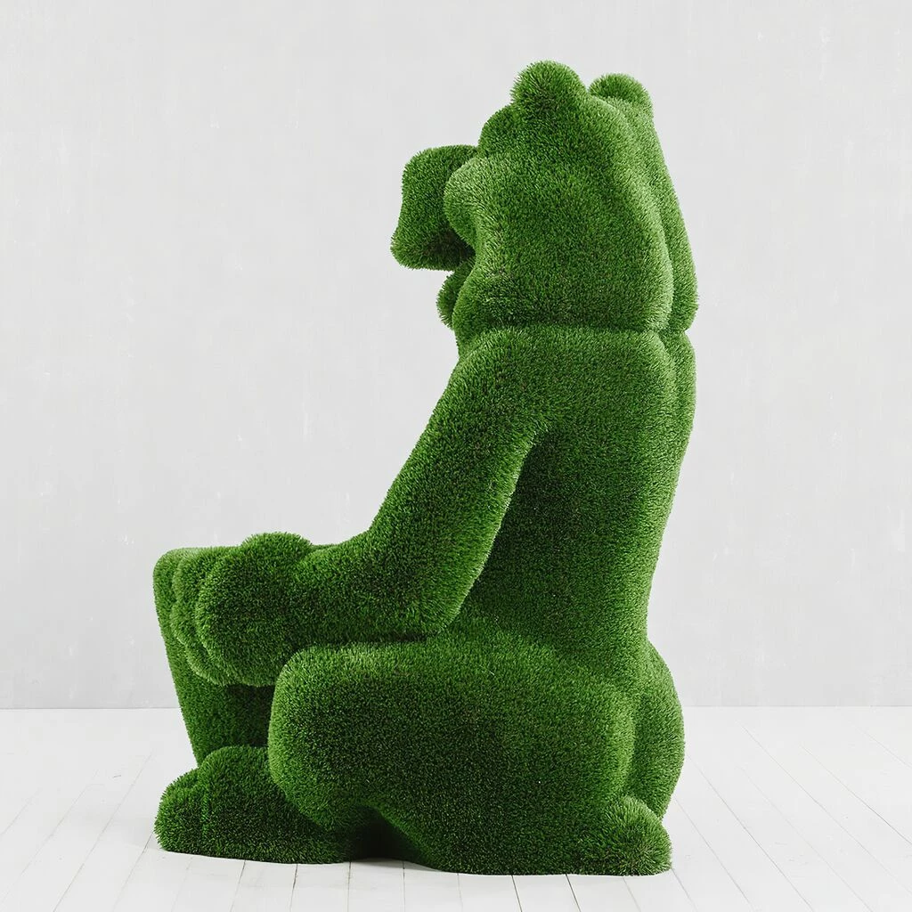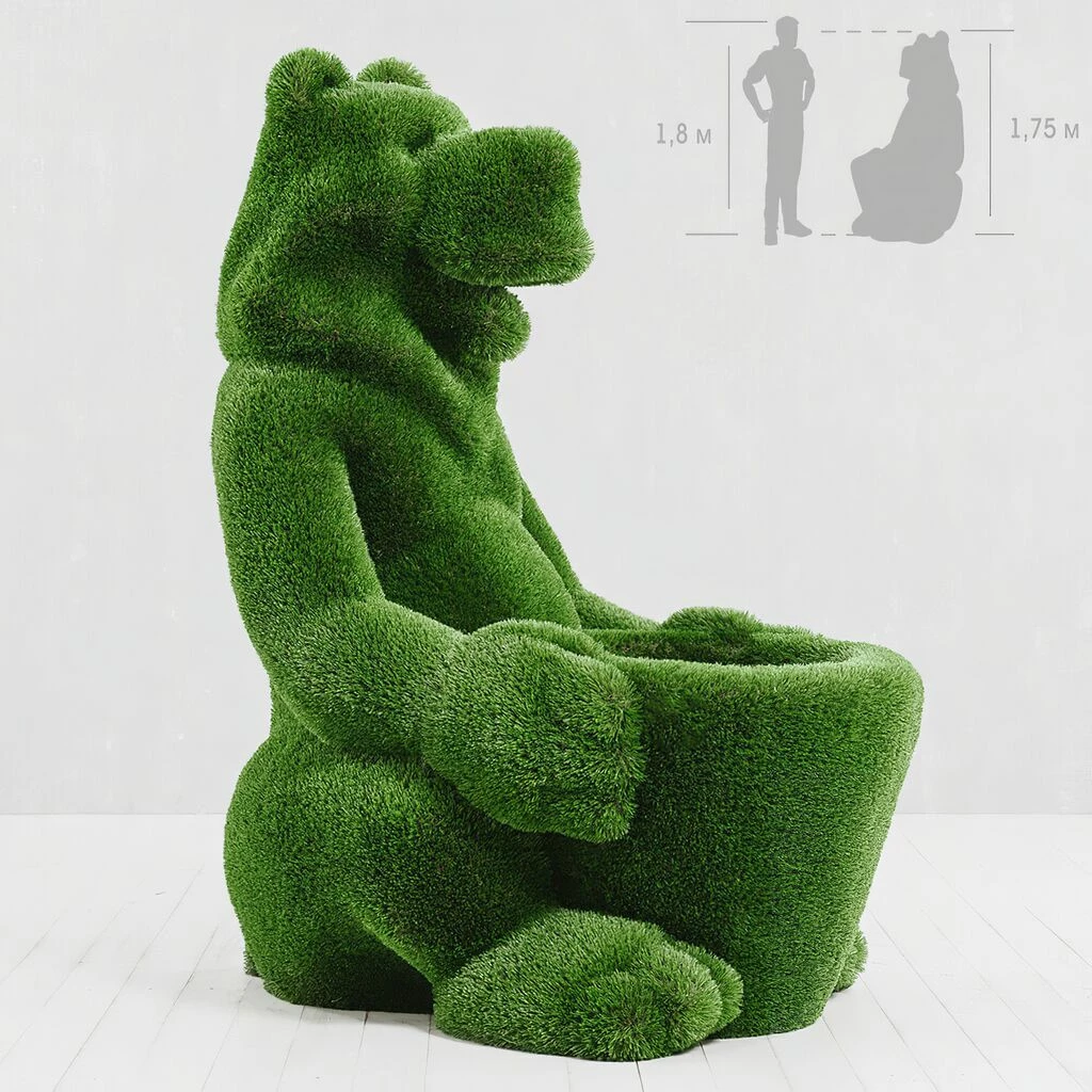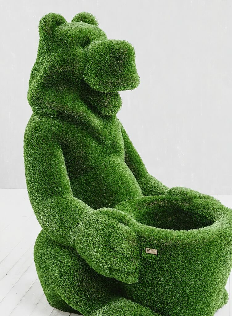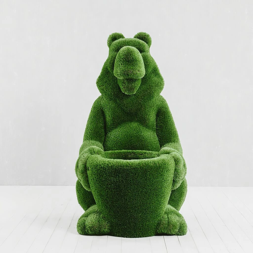 Diese Skulptur eines Bären mit Korb beeindruckt vor allem durch Ihre Größe. Unsere Topiary Gartenfiguren werden aus Glasfaserkunststoff und grünem Kunstrasen gefertigt und sind im Gegensatz zu Buchsbaum Skulpturen besonders pflegeleicht und langlebig.