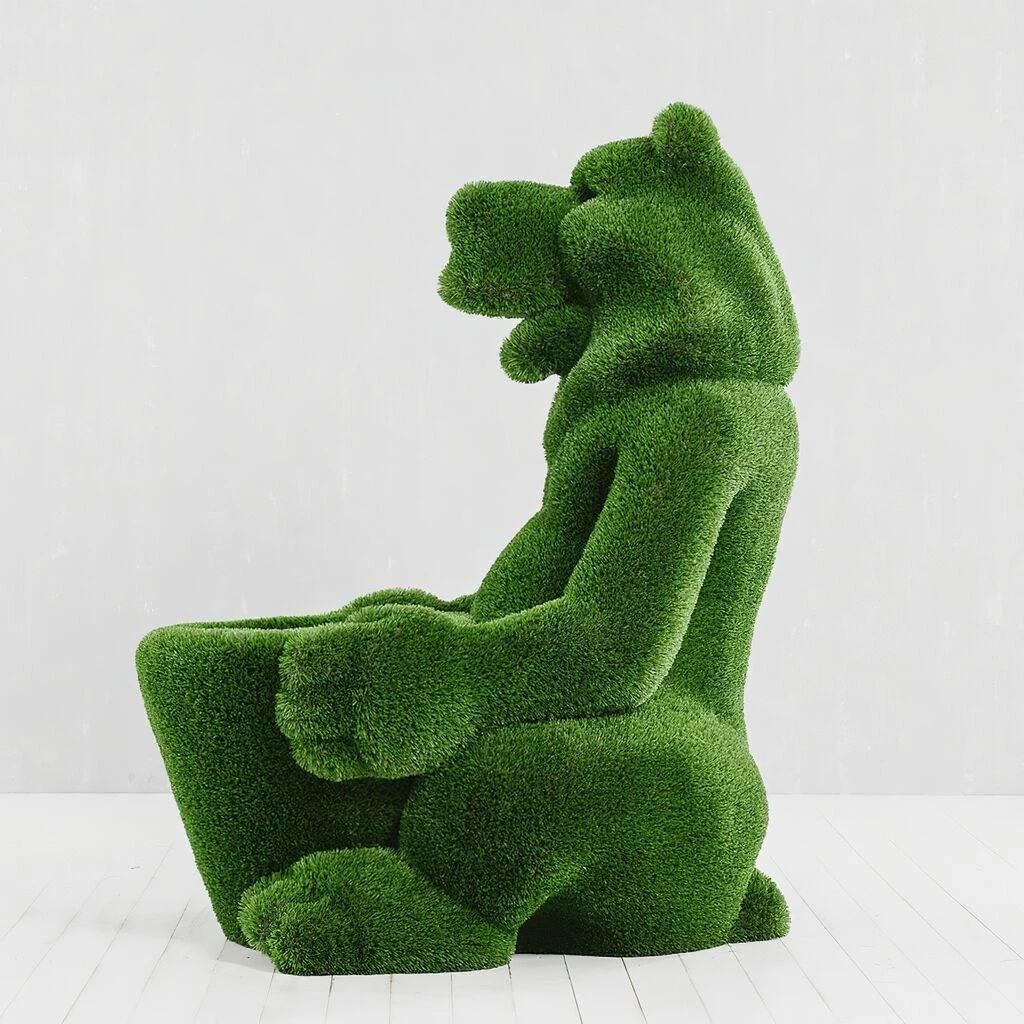 Skulptur Bär Mit Korb – Glasfaserkunststoff & Kunstrasen – Grün – Boog