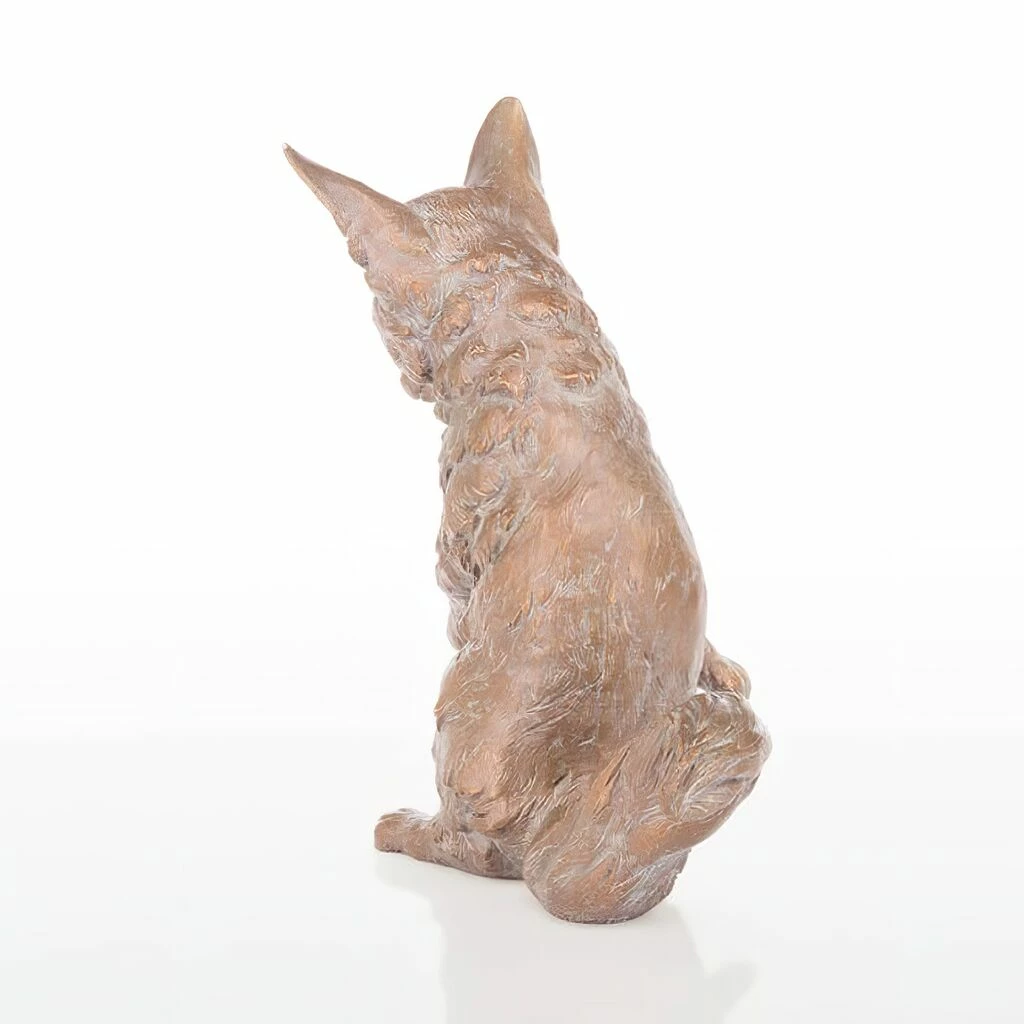 Die Bronze ist extrem robust gegenüber Frost, Nässe sowie Hitze und sehr langlebig. Die Patina wird per Hand aufgetragen und führt aufgrund variierender Farbnuancen zu einer Einzigartigkeit jeder Skulptur. Die Farbe kann somit leicht vom Bild abweichen. Die Reinigung sollte ohne chemische Substanzen erfolgen, um die Schutzschicht nicht zu zerstören und kann einfach mit einem feuchten Tuch erfolgen. Die Gartenstatuen werden für die Befestigung an einem Sockel mit Bohrungen an der Unterseite ausgestattet. Passende Gewindestifte liegen der Lieferung bei. Aufgrund des Hohlgusses sind die Skulpturen trotz der massiven Bronze recht leicht und können somit problemlos überall aufgestellt werden.