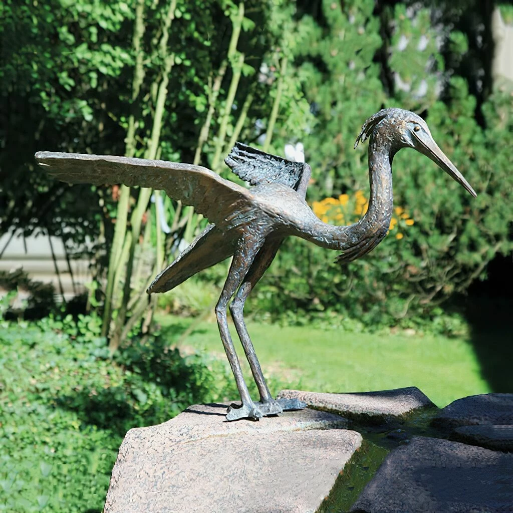 Stehende Reiher Vogelfigur – Limitierte Bronzestatue – Fischreiher