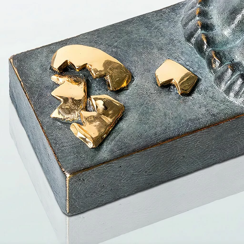 Stehender Mann Mit Goldenen Scherben – Bronzestatue – Malheur