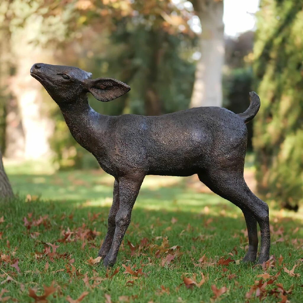 Das Reh wird aus Bronze gegossen und erhält liebevolle Details. Die Rehfigur ist leicht zu reinigen und kann ganzjährig im Außenbereich aufgestellt werden.