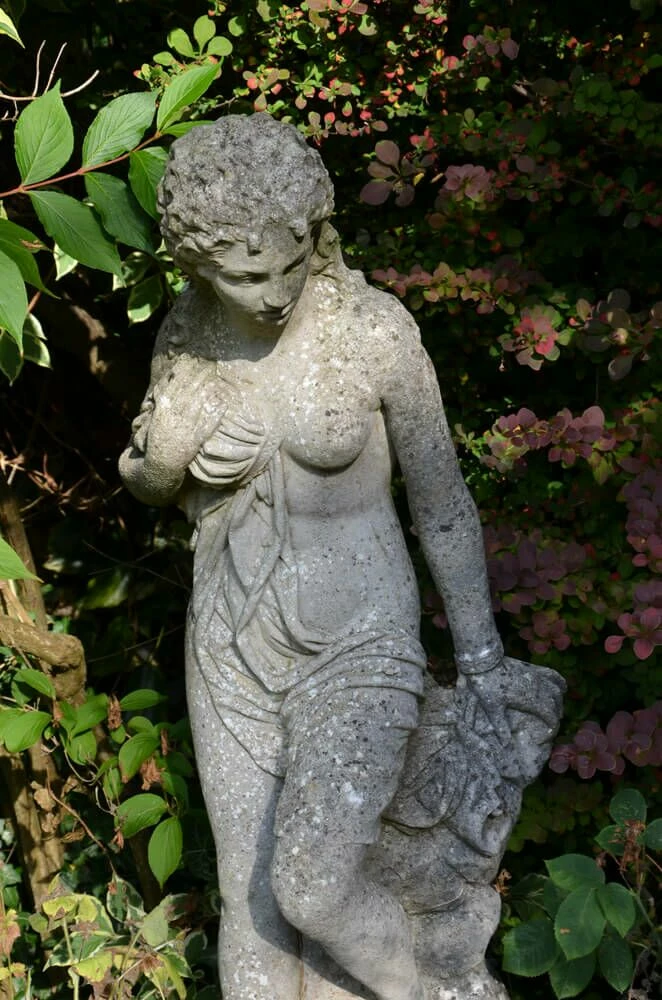 Diese charmante Frauen Stein Garten Skulptur wurde einem weißen Marmor Original aus dem 19. Jahrhundert nachempfunden. Die Frau steht, spärlich bekleidet, mit der rechten Hand ihre Robe an der Brust umklammernd an einem Felsen um welchen sich die Kleidung umschlingen hat. Der Mythologie nach, wurde sie an dem Felsen gefesselt und wartete auf ihren Helden Perseus welcher sie befreite, die Monster besiegte und sie zur Frau nahm. Diese Frauenstatue ist ein absoluter Blickfang und wird Ihren Garten bereichern.