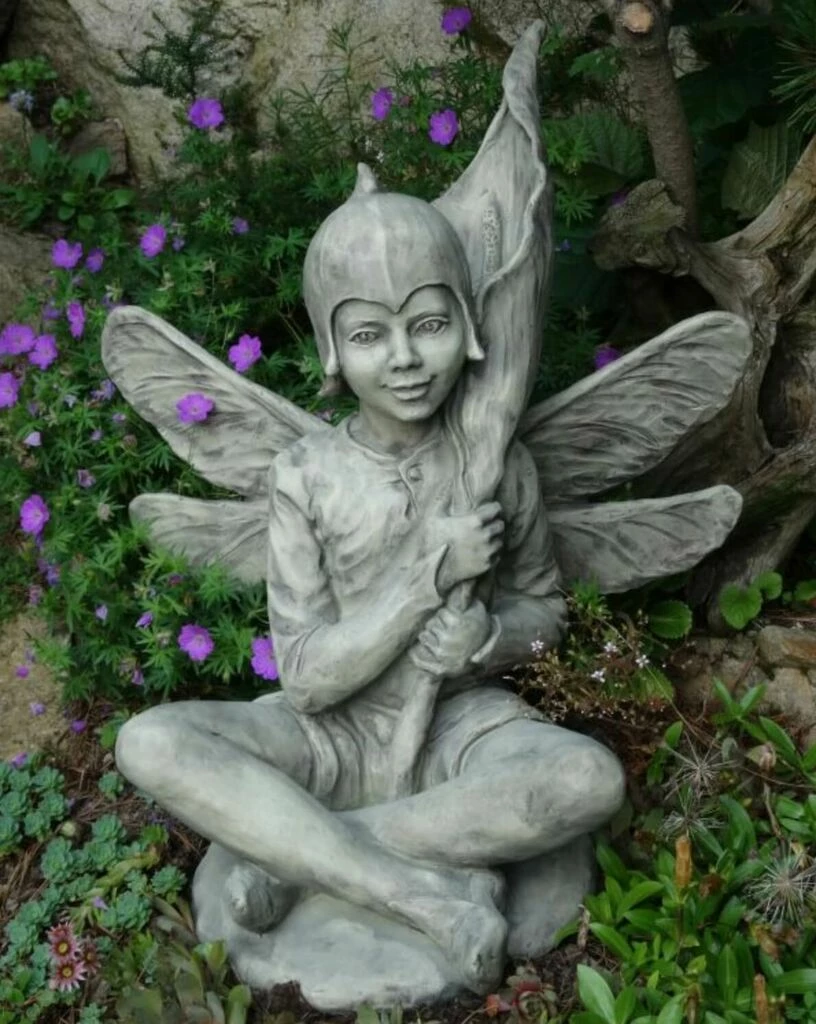 Um das beste Mischungsverhältnis für jede Figur zu garantieren wird mehrmals täglich frischer Beton angemischt. Durch eine spezielle Fülltechnik wird der Einschluss von Luftlöchern vermieden und es können keine Hohlräume entstehen. So ist die Frostbeständigkeit gewährleistet. Die gefüllten Formen werden anschließend mindestens 24-48h getrocknet. Vorsichtig werden die Figuren aus der Form gelöst und noch mindestens 4 Wochen an der Luft getrocknet. Bevor die Gartenfiguren Ihre typische Farbe erhalten, werden die Nähte der Form und Ungenauigkeiten von Hand entfernt. Nun werden mehrere Farbschichten aufgetragen, bis die finale Patina erkennbar ist.
