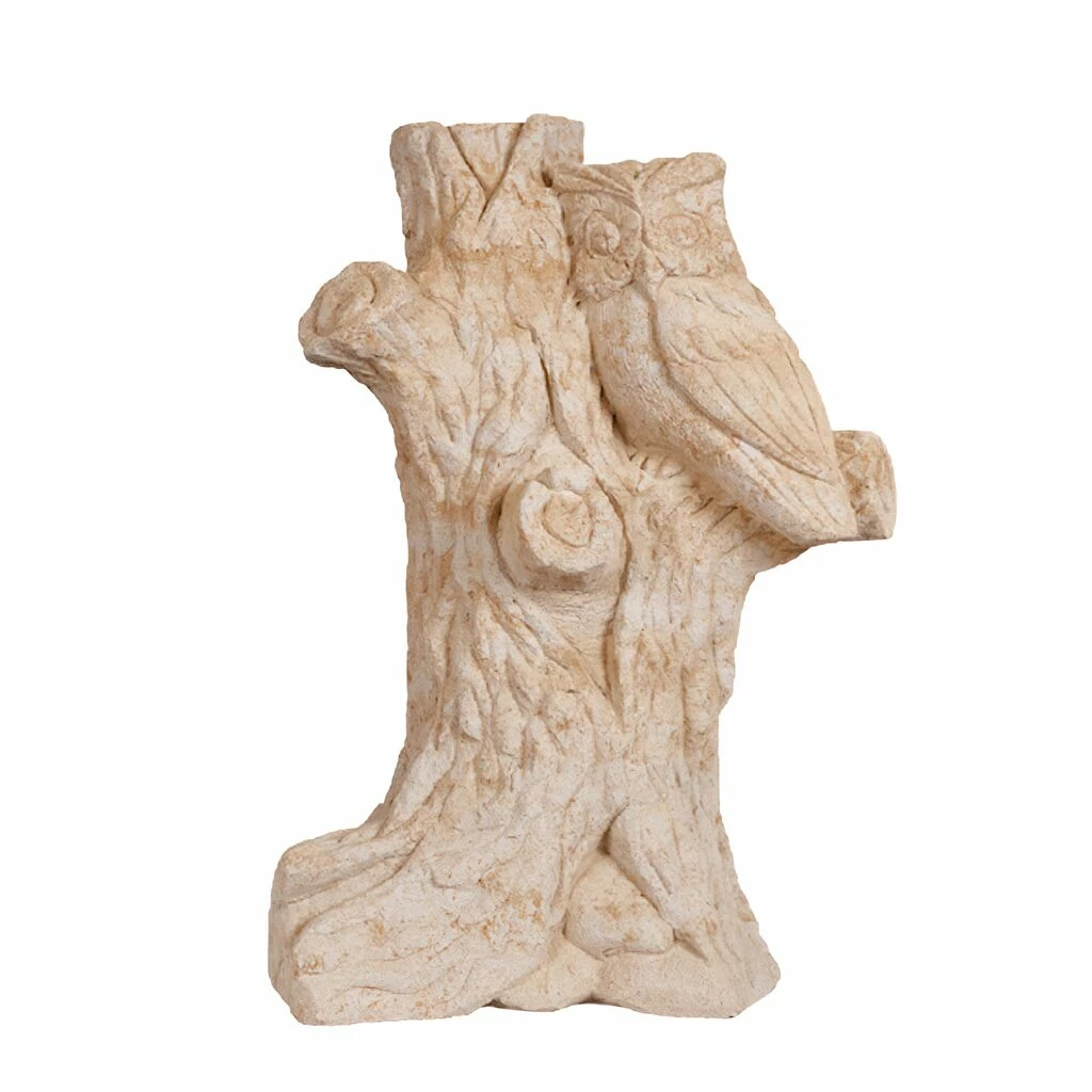 Steinguss Gartenstatue – Detailreicher Baumstamm Mit Eule – Gizmo