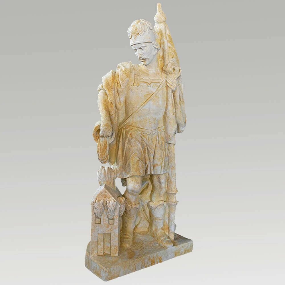Bei dieser Steinguss Skulptur handelt es sich um einen Heiligen, welcher Rettung bringt. Zu sehen ist ein Mann mit einem Wasserkrug in der Hand und löscht ein brennendes Haus. Dieser Akt der Rettung ist ein Zeichen für Mut und Stärke. Herstellungstechnik auf Basis von Sand, Eisenoxyd und Weißzement ermöglicht eine detailgetreue Nachbildung der durch uns verwendeten historischen Vorlagen aus staatlichen & privaten Sammlungen. Die Skulptur passt hervorragend sowohl als stimmungsvolle Dekoration für den Innenbereich, als auch als Garten- oder Wanddekoration für Außen. Bei uns auf GARTENTRAUM können Sie aus 3 Farben: Sand, Portland-Weiß und Antikgrau wählen.