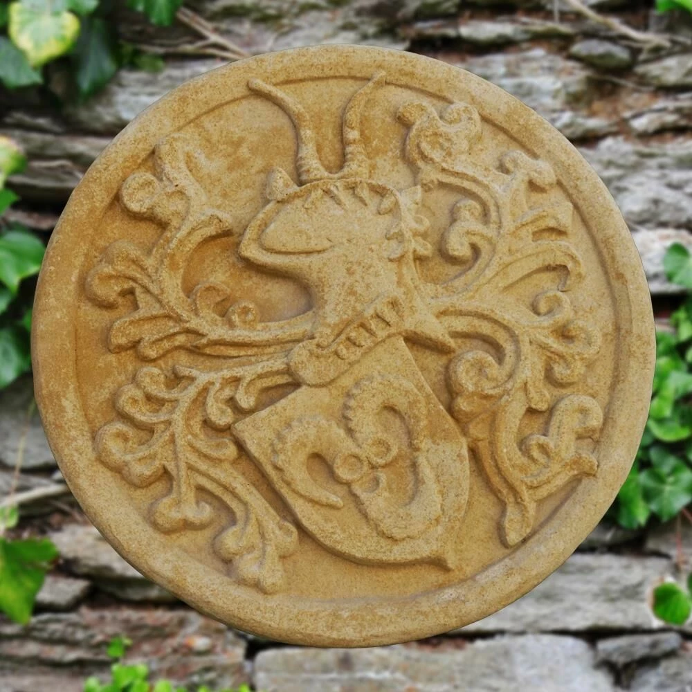 Dieses wundervolle runde Relief aus Steinguss zur Wandmontage wird in einer traditionsreichen Künstlerwerkstatt in Handarbeit gefertigt. Das verwendete Material ist witterungsbeständig und frostfest und für die dauerhafte Anbringung im Außenbereich geeignet. Ob Toreinfahrt, Gartenmauer oder Hauswand, dieses einzigartige Wandrelief wird seinen Standort ausdrucksstark bereichern und ein Hingucker für Gäste und Bewohner sein. Dank hochwertiger Verarbeitung werden Sie viele Jahre lang Freude an diesem wundervollen Steinrelief haben. Bei Fragen rund um unsere Gartendekoration steht Ihnen das Team von GARTENTRAUM gerne telefonisch oder per E-Mail zur Verfügung.
