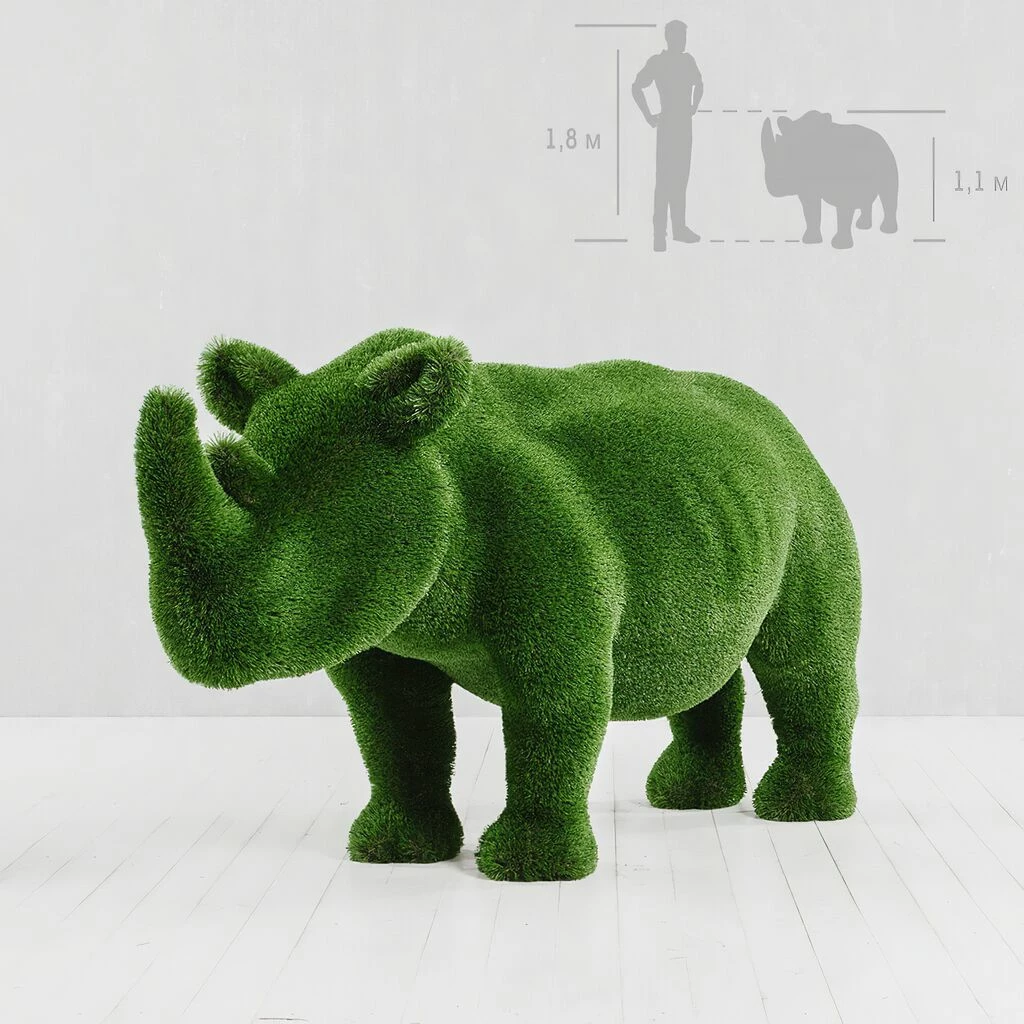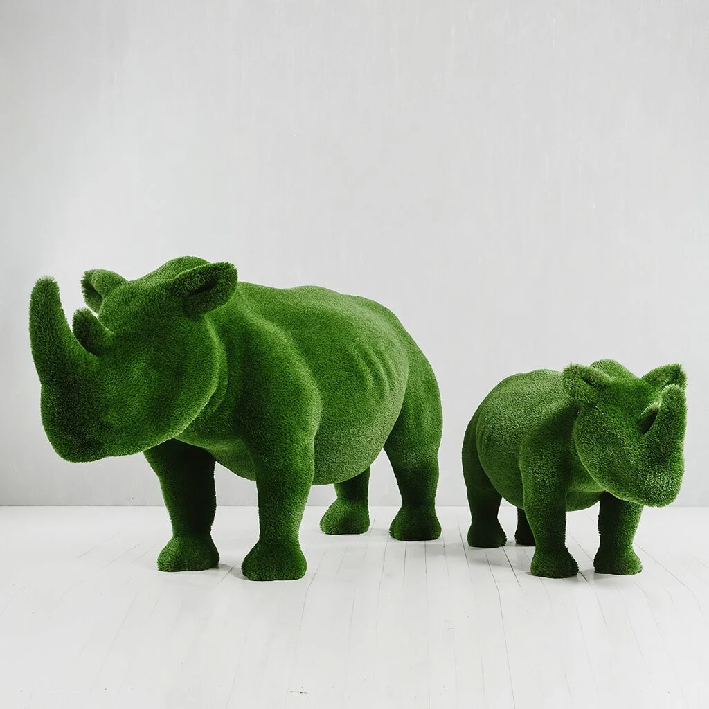 Topiary Nashorn Gartenfigur – GFK & Kunstrasen – Grün – Abiola