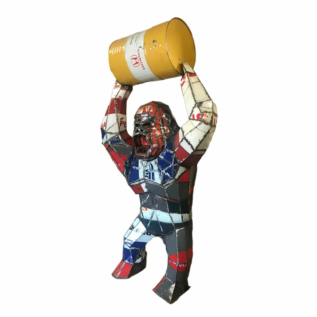 Beim Upcycling werden aus alten Materialien neue Produkte geschaffen. Durch diese Art des Recyclings wird die Verwendung von Rohstoffen reduziert. In Handarbeit werden von einem Absolventen des bekannten „Institute of Arts“ in Java Kunstwerke aus Ölfässern geschaffen, wodurch neben Figuren auch funktionale Möbelstücke entstehen.