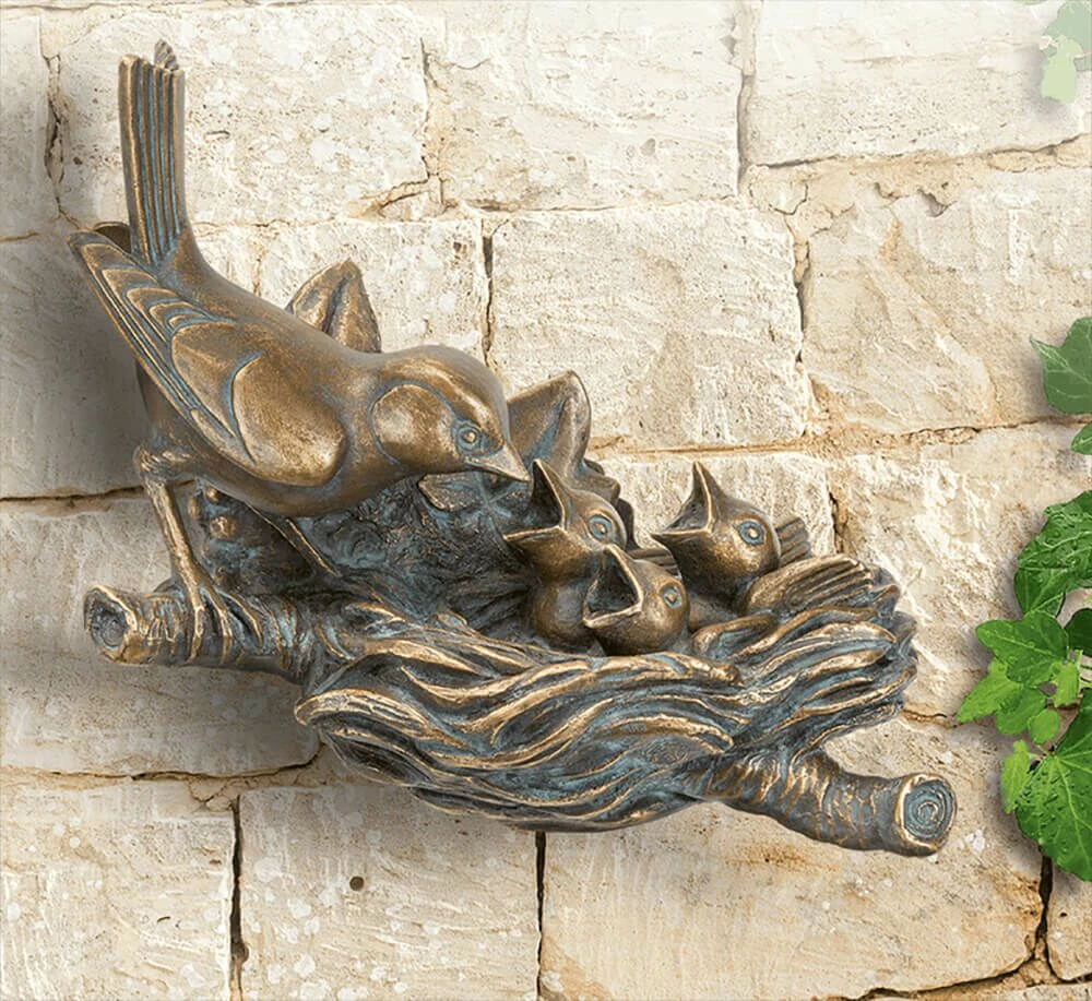 Vogelskulptur Aus Bronze Zur Wandbefestigung – Finkennest