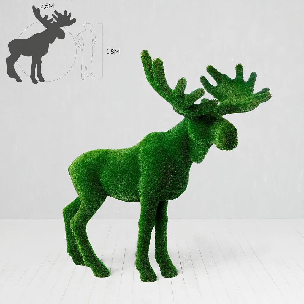 Alle Figuren entstehen als 3D-Modell am Computer. Anschließend wird der Rahmen aus Glasfaserkunststoff hergestellt und von Hand mit Kunstrasen beklebt. Jede Skulptur ist somit ein individuelles Unikat. Dank des Glasfaser Rahmens sind die Topiaries besonders leicht, stoßfest und langlebig – außerdem rostfrei, korrosions- sowie temperatur- und UV-beständig. Es sind keine weiteren Pflegemaßnahmen nötig. Die Gewichtsbeschränkung für die Formschnittfiguren liegt zwischen 30 bis 250kg. Wichtig ist, dass die Skulpturen weit entfernt von Feuerstellen aufgestellt werden.